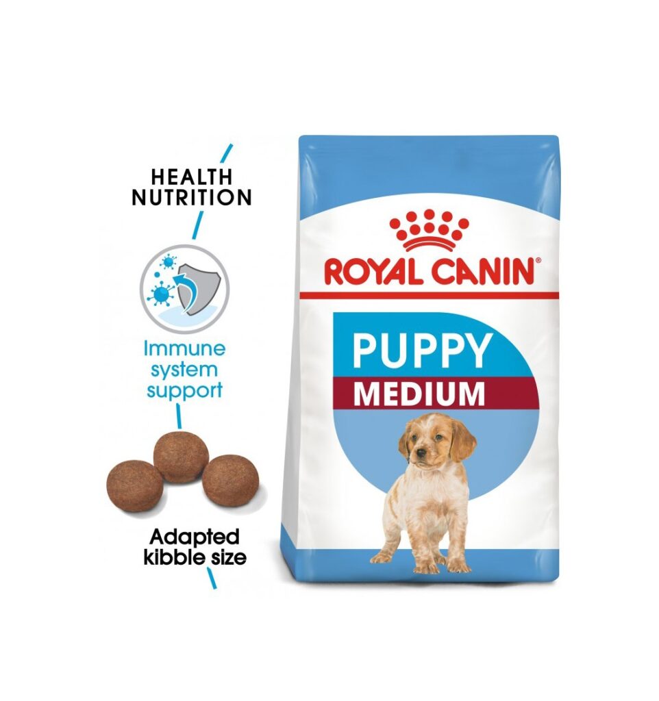 ROYAL CANIN® Medium Puppy food is suitable for puppies between 2 and 12 months old that will have a medium-sized adult weight between 11kg to 25kg. ROYAL CANIN® Medium Puppy food contains an increased protein content to help support healthy, muscular, and skeletal growth during the relatively short growth period.