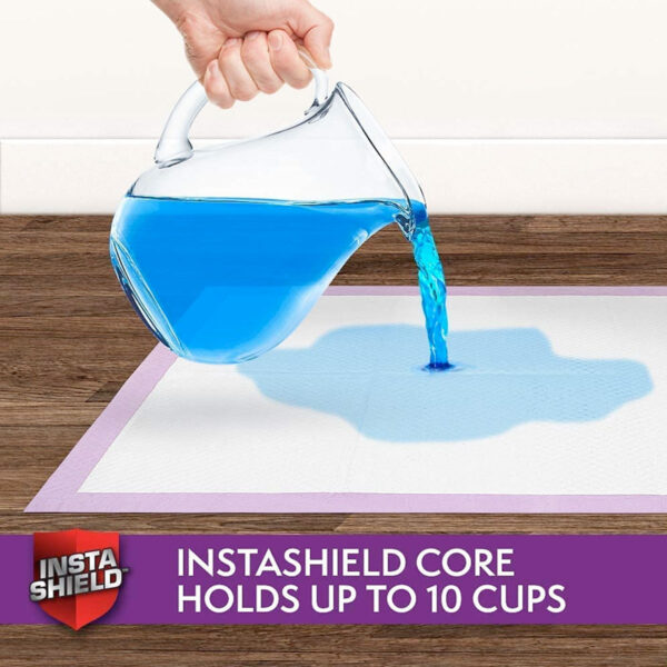 - ABSORB MORE LIQUID – Super absorbent InstaShield Technology allows these dog pads to hold up to 10 cups of liquid for all day protection.