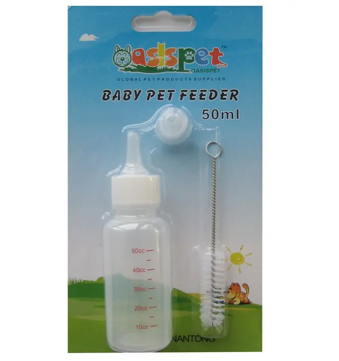 This food-safe nursing bottle holds up to 50ml of liquid and comes with a fresh nipple, replacement nipple, and a cleaning brush. Easy to use and easy to clean, the baby pet feeding bottle can be used for dogs, cats, or any other pet whose mother nurses.