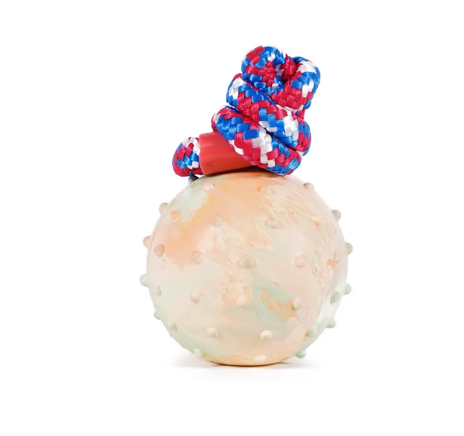 The rubber ball withstands bites and tugs while encouraging them to satisfy their play and pulling instincts safely.
