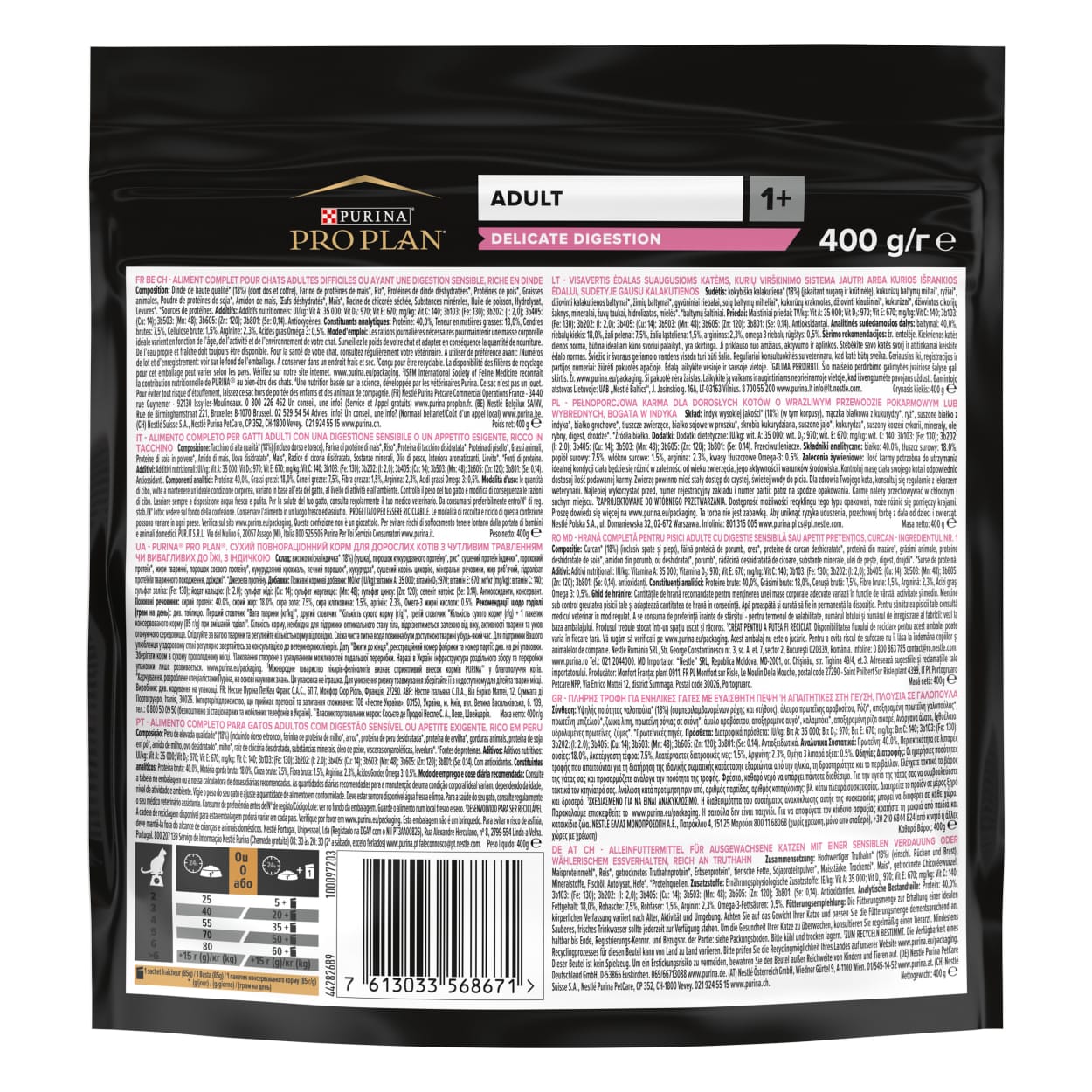 PURINA® PRO PLAN DELICATE DIGESTION dry cat food is formulated with chicken pieces as the first ingredient and other highly digestible selected protein sources without any wheat to help ease the digestive process of neutered cats.