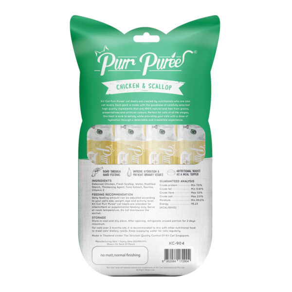 Contains a smooth blend of Chicken & Scallop, with no added colors or preservatives and is perfect for cats of all life stages