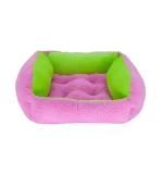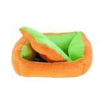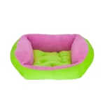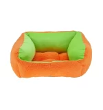 Reverse the color scheme by turning the bed inside out! Designed for both dogs and cats to enjoy a little nap time, this reversible pet bed grabs attention in cool shades of light green, pink and orange.