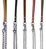 The high quality synthetic leather handle provides a firm grip on the premium quality chain link lead, while the lobster claw clasp hooks nicely and steadily. Available in five chain lengths.