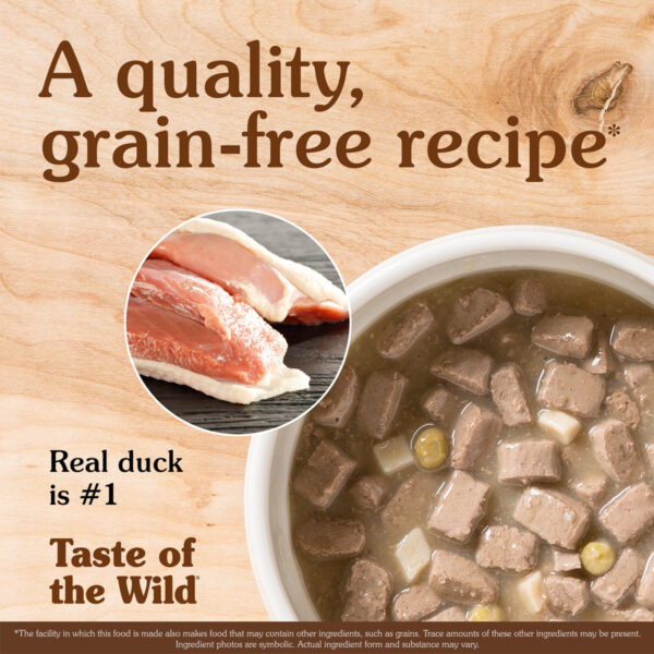 A great tasting complement to the dry Taste of the Wild formulas, the Wetlands Canine Formula with Fowl in Gravy will satisfy even the most finicky dogs. This complete and balanced formula can also be fed as your pet’s sole diet. Made with fowl, this formula offers a taste sensation like no other. Contains duck, quail and turkey for a blend of fowl that provides optimal amino acid nutrition. Supplemented with vegetables and fruits, this formula delivers antioxidants to help give your friend a healthy lifestyle.