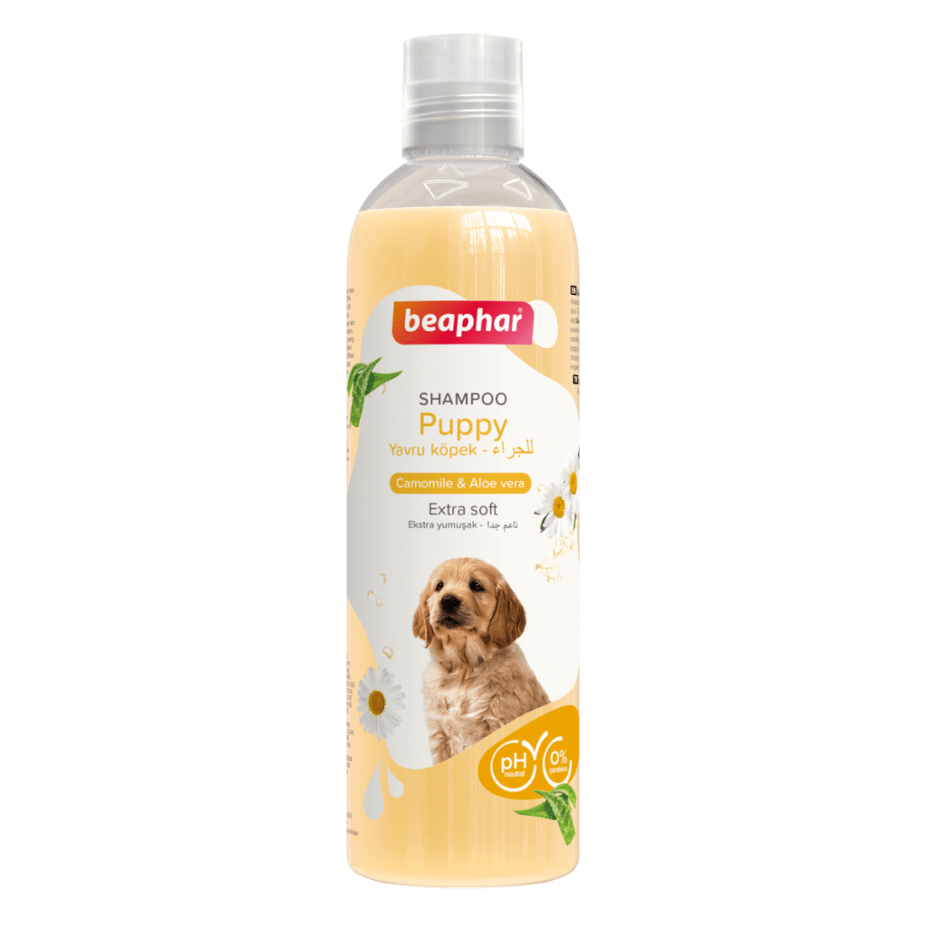 Beaphar Puppy Shampoo is a mild, pH neutral shampoo specially formulated for a puppy’s sensitive skin. The shampoo, enriched with Chamomile and Aloe vera, keeps coats soft and well-maintained, leaving your puppy smelling fresh and clean.